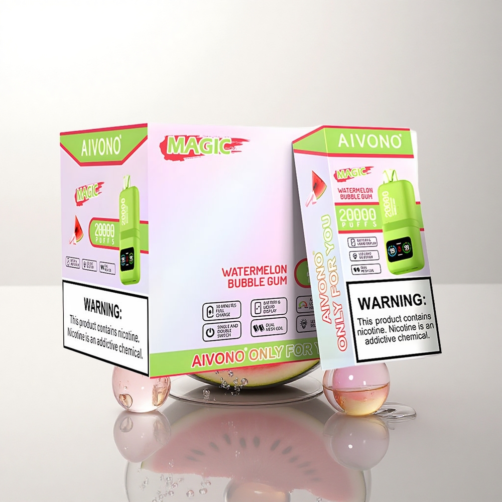 Aivono Aim Magic 20000 Puffs Watermeloen Bubble Gum Dual Mesh Coils LCD Display Type-C